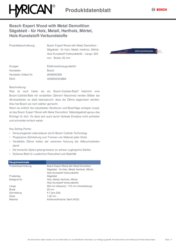 Brzeszczot do piły szablastej Bosch Accessories 2608900398 1 szt.