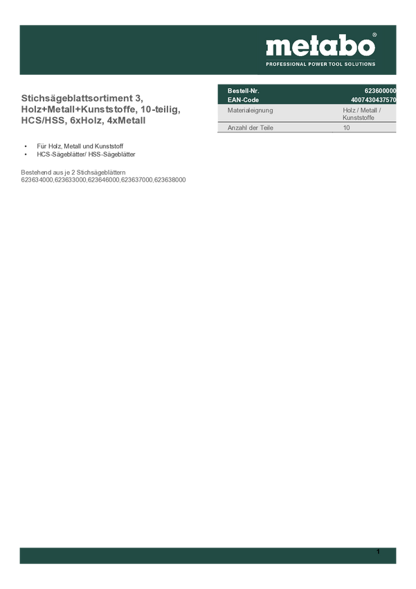 Zestaw brzeszczotów do wyrzynarek Metabo 623600000 1 zest.