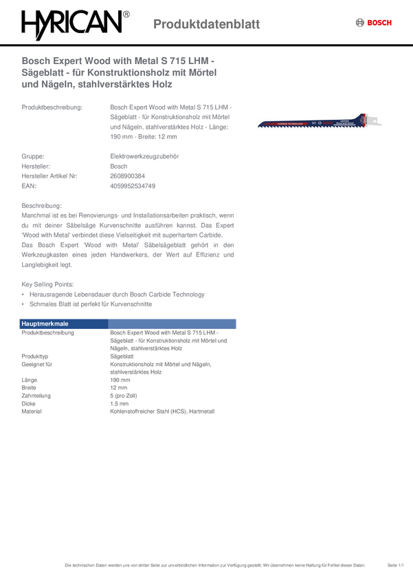Brzeszczot do piły szablastej Bosch Accessories 2608900377 1 szt.