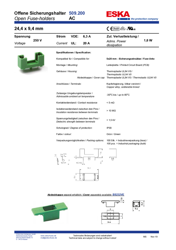 nasadka ESKA 506.000, 506.100, 506.200, 509.000, 509.100, 509.200 BS232VE, 1 szt.