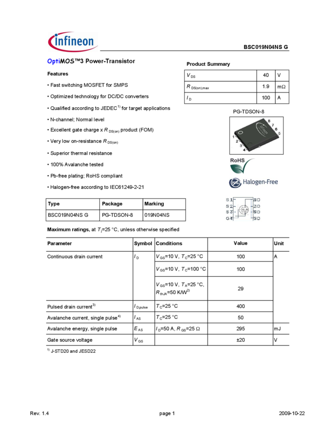 Trans MOSFET N-CH 40V 100A 8-Pin TDSON FL T/R