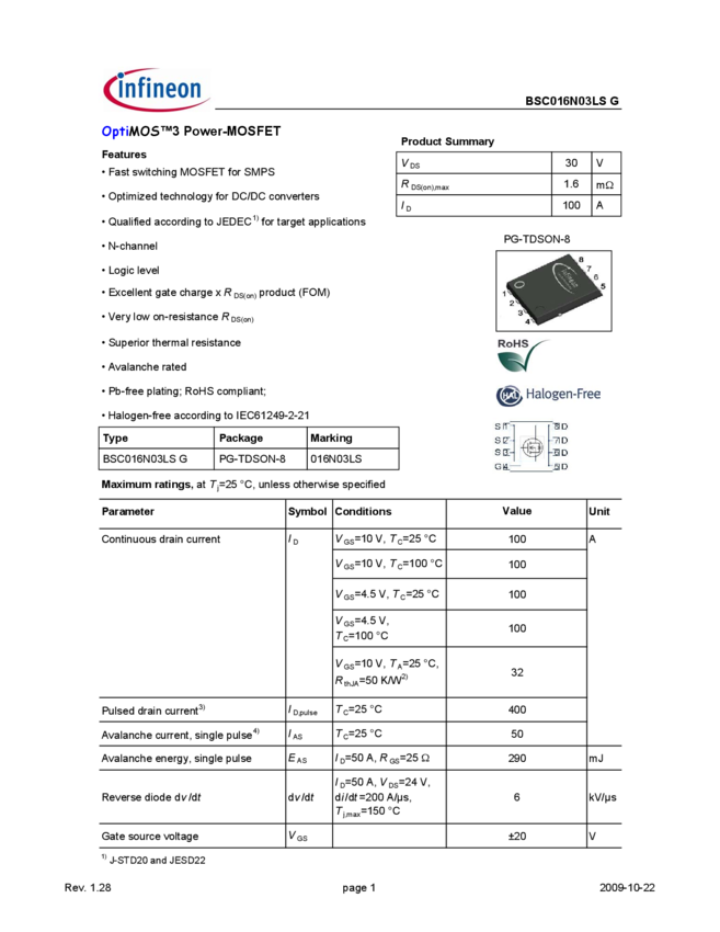 Trans MOSFET N-CH 30V 28A 8-Pin TDSON T/R