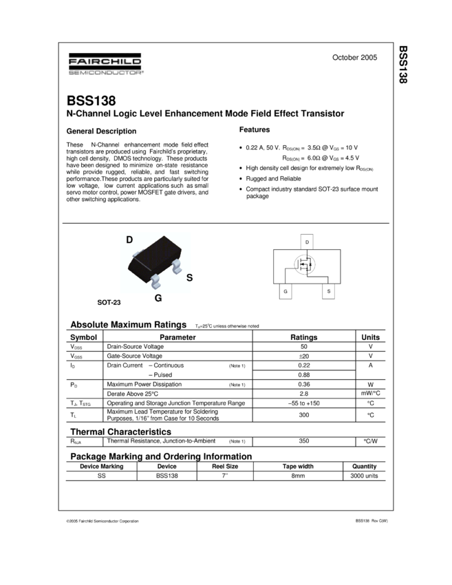 Small Signal MOSFET 50V 200mA 3.5 Ohm Single N-Channel SOT-23 Logic Level