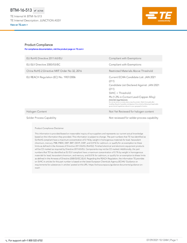 TE Connectivity BTM-16-513 TE DE CTJ AS81714 Series II, 1 szt.