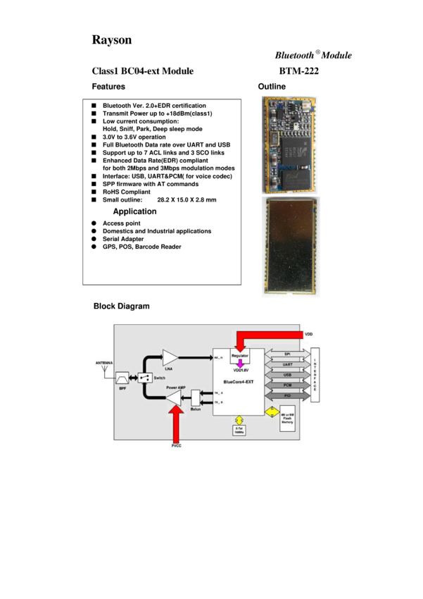 Moduł Bluetooth, class 1, SPP, UART, , wymiary 28.2x15mm, Rayson