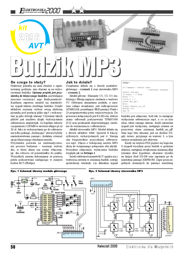 AVT2896 A+ Budzik MP3 - płytki drukowane I zaprogramowany układ