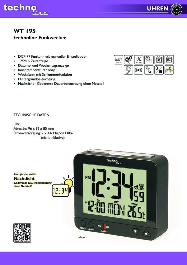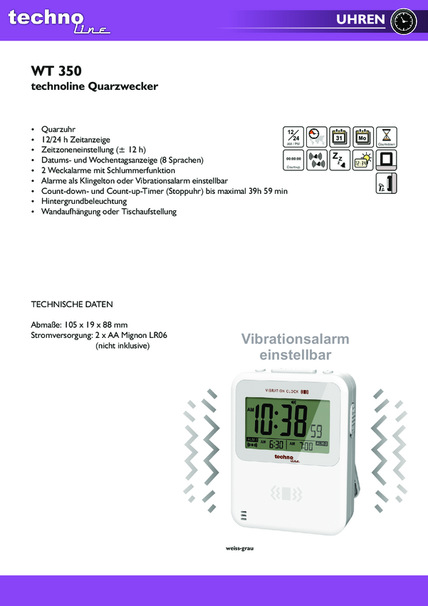 Budzik Techno Line blanc WT 195 WHITE, biały