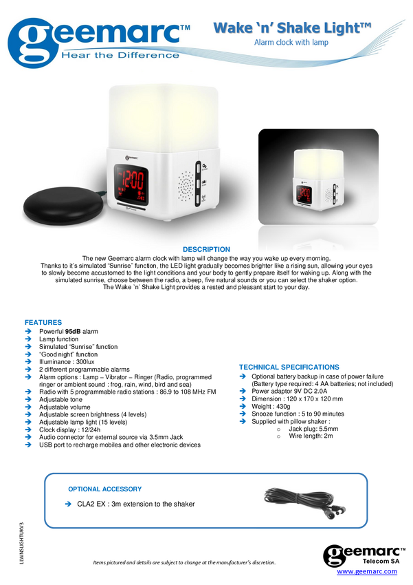 Geemarc JWNS-Light_WH_I Kwarcowy Budzik biały bardzo głośny budzik