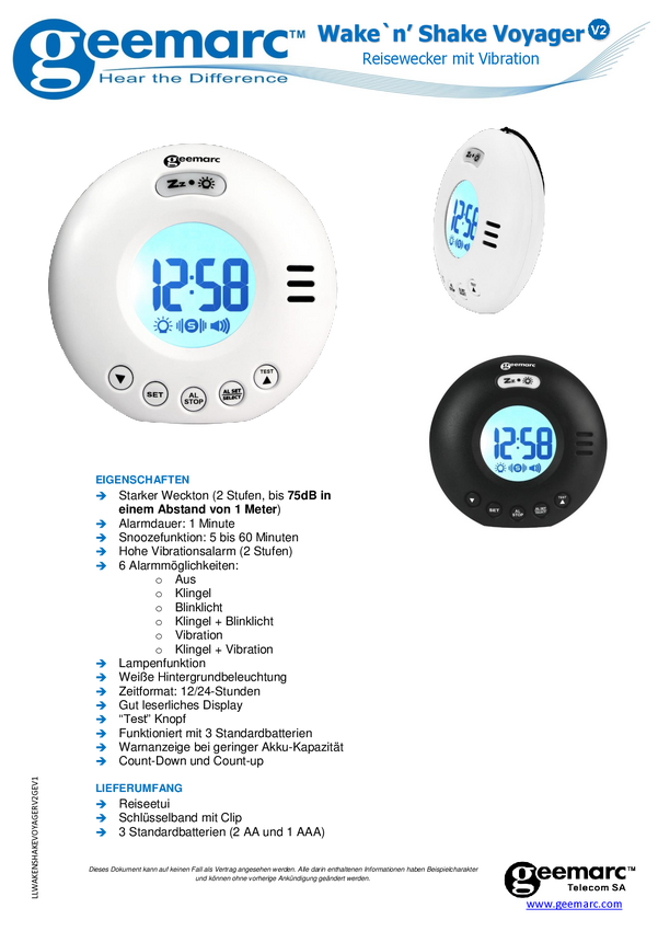 Budzik Geemarc JWNS-VOYAGERV2 JWNS-VOYAGERV2_BLK_I, czarny