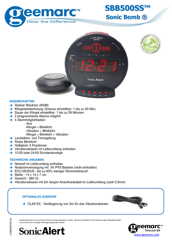 Budzik Geemarc SBB500SS-IG, cyfrowy, Kwarcowy
