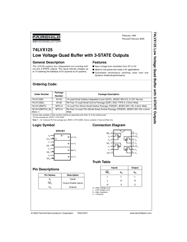 Układ scalony 74HC125, 4 x bufor 3-stan., DIL14