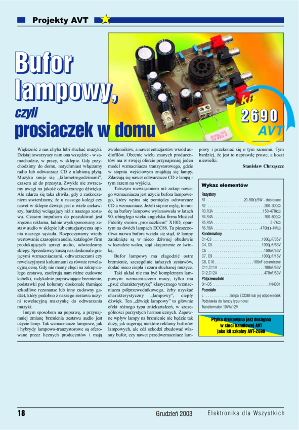AVT2690 A Bufor lampowy, czyli prosiaczek w domu - płytka drukowana
