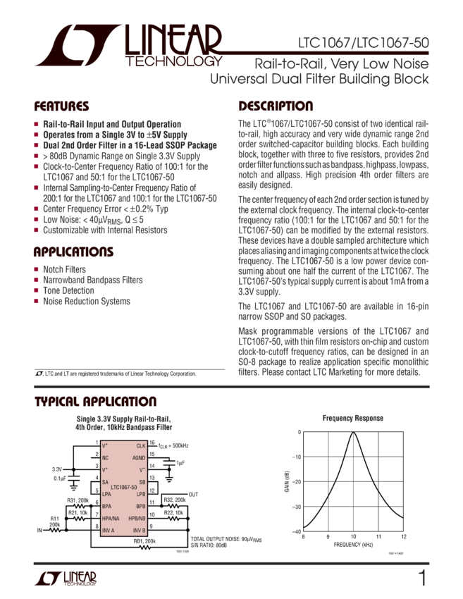Rail-to-Rail, Very Low Noise Universal Dual Filter Building Block