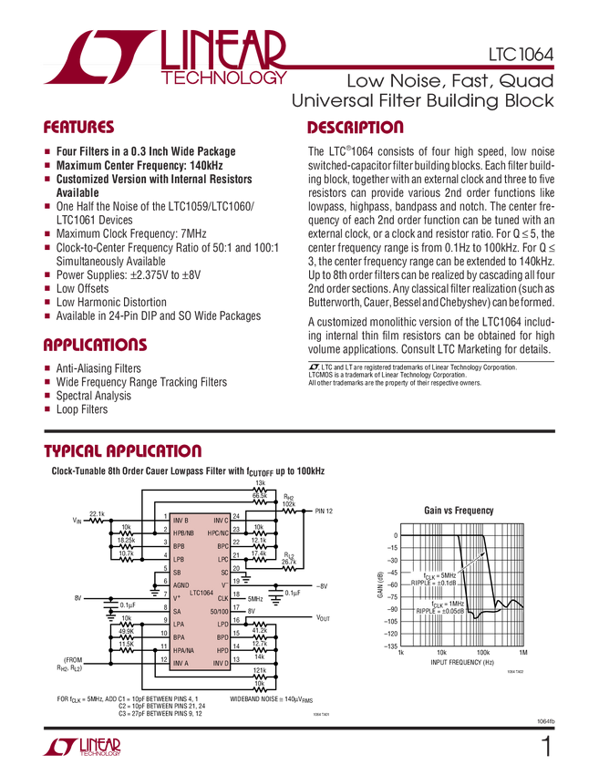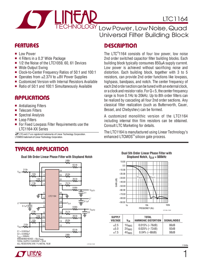 Low Power, Low Noise, Quad Universal Filter Building Block