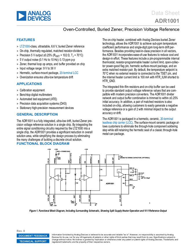 Oven-Controlled, Buried Zener, Precision Voltage Reference