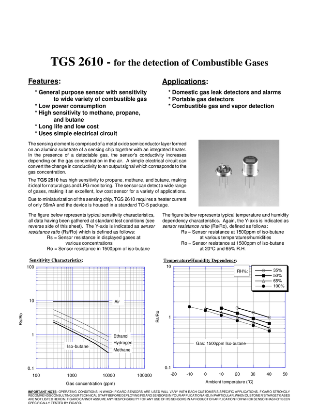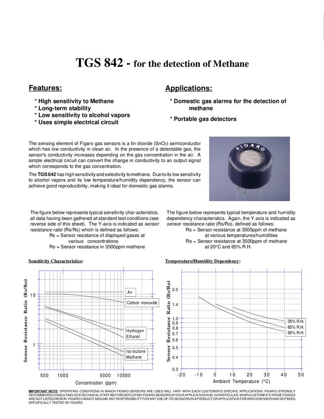 GAZY: METAN PROPAN BUTAN-ZWIĘKSZONA CZUŁOŚĆ NA METAN Uwaga: jest to sam czujnik, a nie gotowe urządzenie