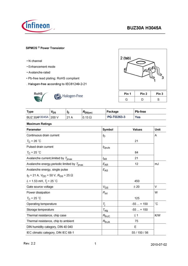 Trans MOSFET N-CH 200V 21A 3-Pin(2+Tab) TO-263