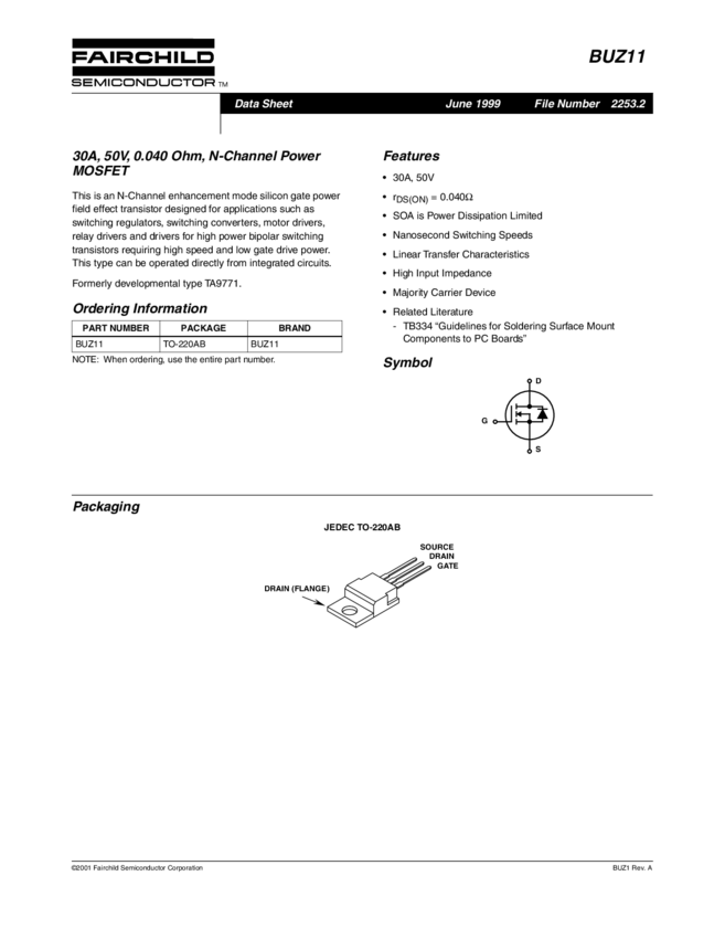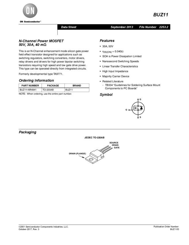 N-Channel Power MOSFET 50V, 30A, 40mΩ