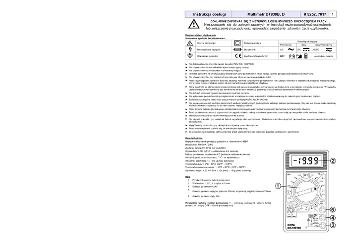 Miernik; uniwersalny; DT830D; cyfrowy; buzzer; RoHS