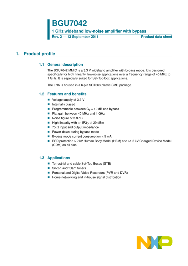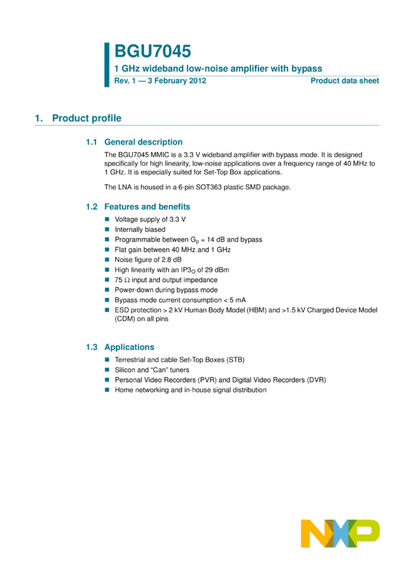 1 GHz wideband low-noise amplifier with bypass