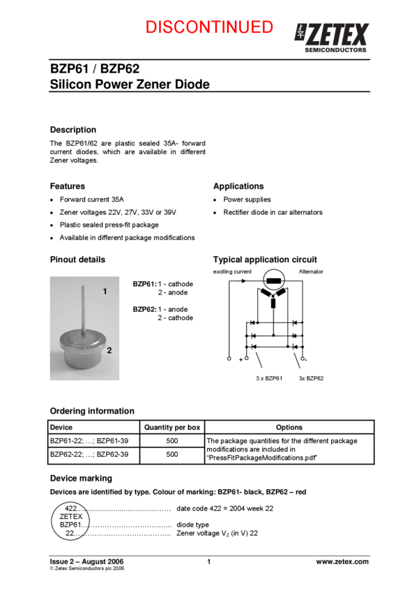 BZP620C4V7 Dioda Zenera 12.5W 4.7V