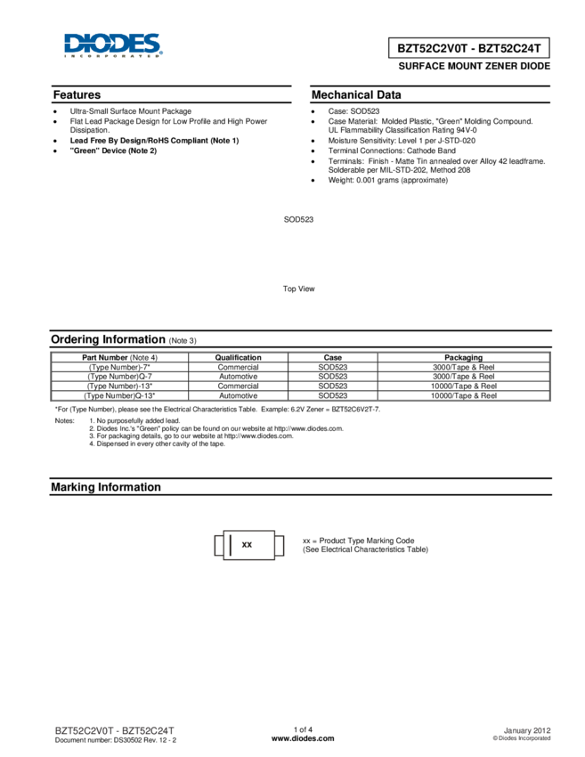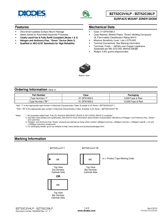 Diode Zener Single 7.5V 6% 250mW 2-Pin DFN T/R