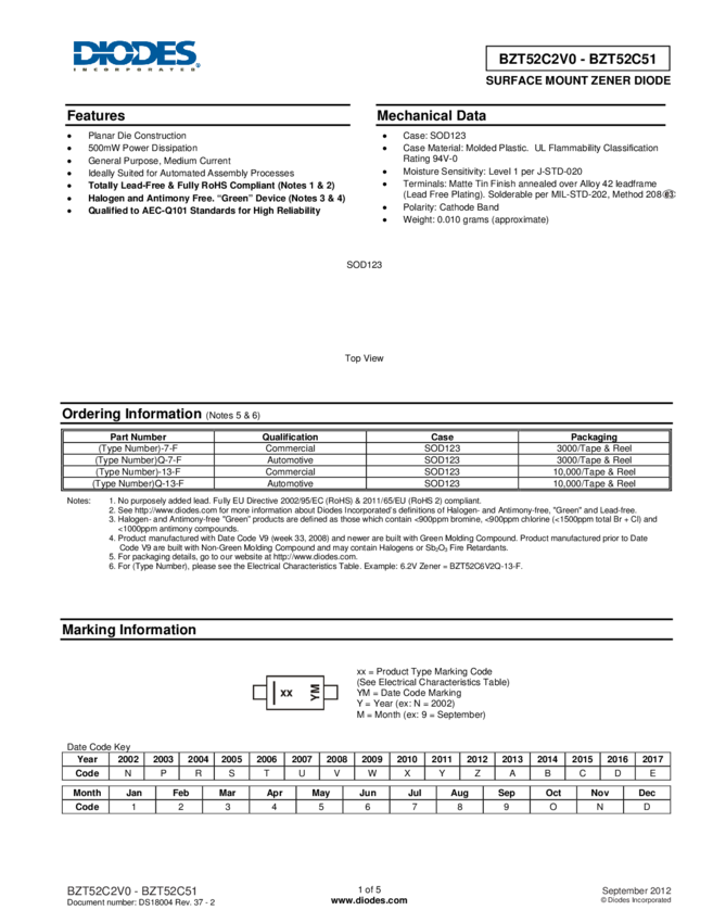 Taiwan Semiconductor Dioda Zenera BZT52C20 RHG taśma na dużej rolce