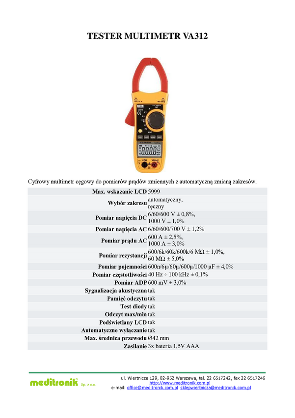 Cyfrowy miernik cęgowy do pomiarów zmiennych