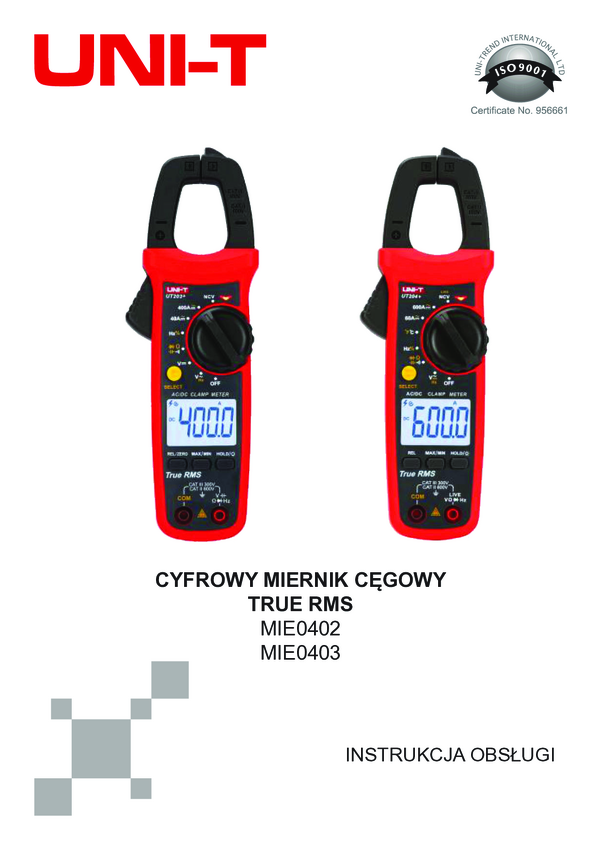Miernik; uniwersalny; cęgowy; UT202+; 2/20A; 200/400A; 600V DC; 600V AC; UNI-T