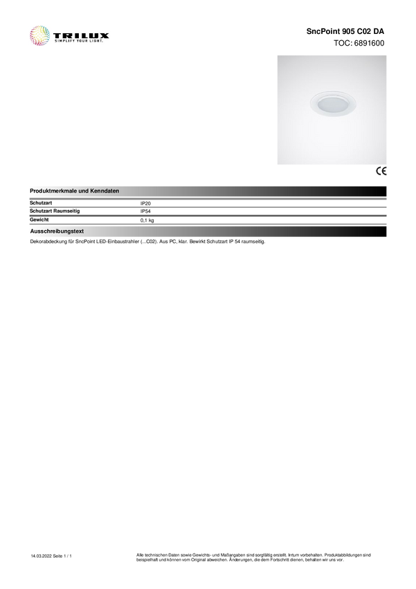 Trilux 6891600 Pokrowiec na dekor SncPoint 905 C02 DA 1 szt.
