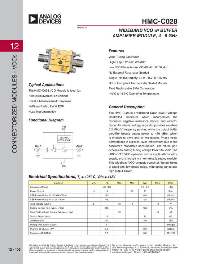Wideband VCO w/Buffer Amplifier Module, 4 - 8 GHz
