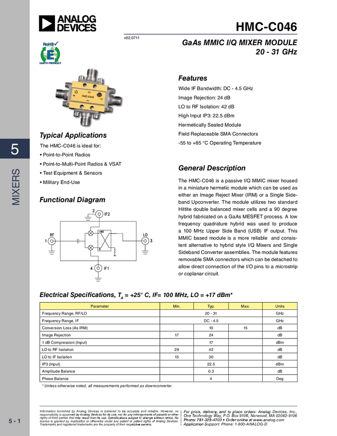 I/Q Mixer Module, 20 - 31 GHz