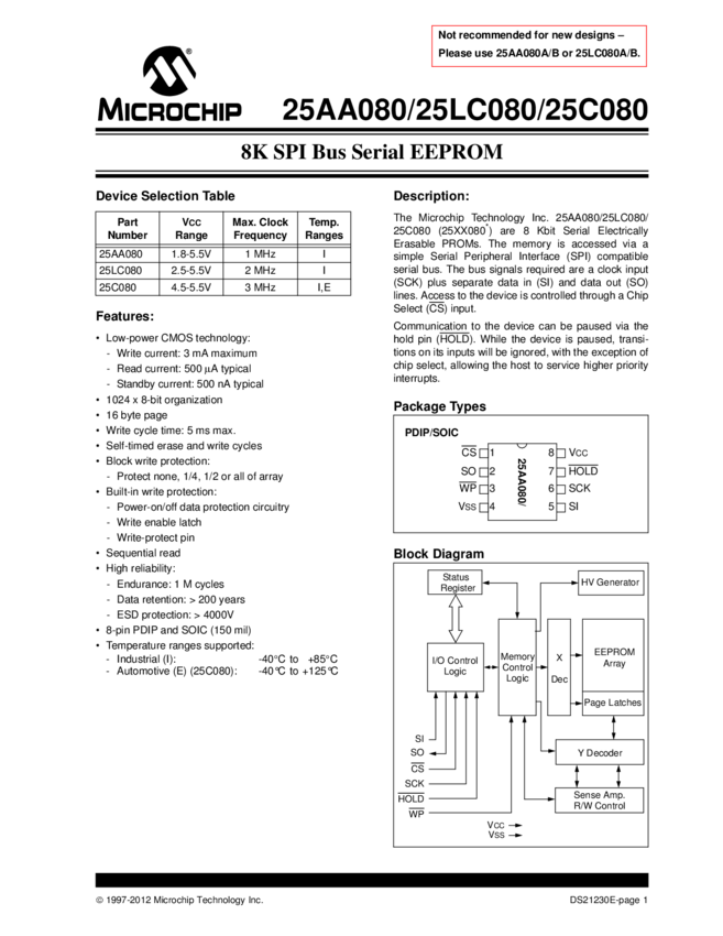 25AA080/C080/LC080 Datasheet - Not Recommended for new design (02/05/2013)