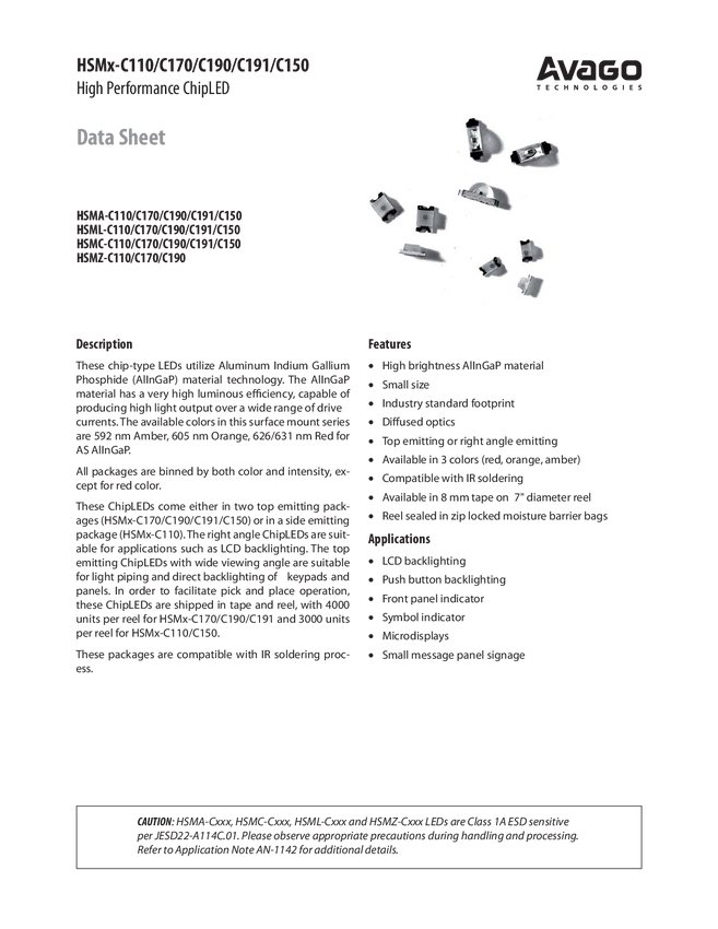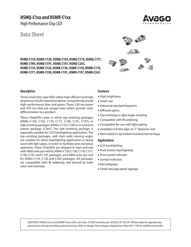Dioda LED SMD Broadcom HSMR-C190 55 mcd 155 ° 20 mA 3.4 V 1 szt.