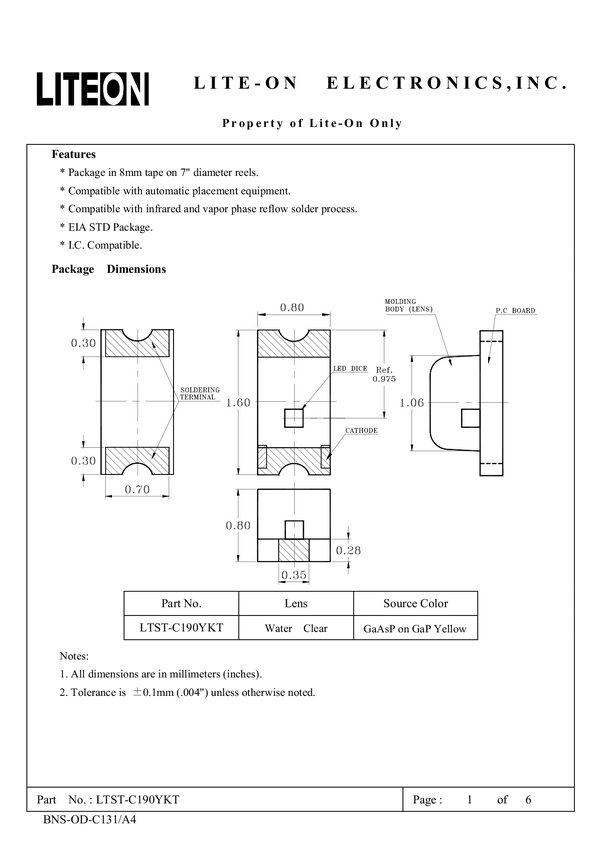 Dioda LED SMD Lite-On LTST-C190YKT 6 mcd 130 ° 10 mA 2.1 V 1 szt.