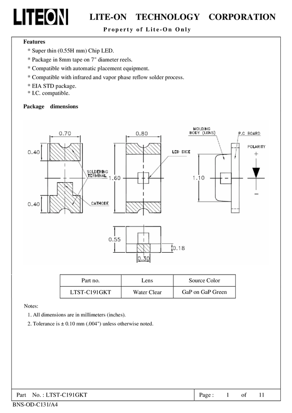 Dioda LED SMD Lite-On LTST-C191TGKT 260.5 mcd 130 ° 20 mA 3.2 V 1 szt.