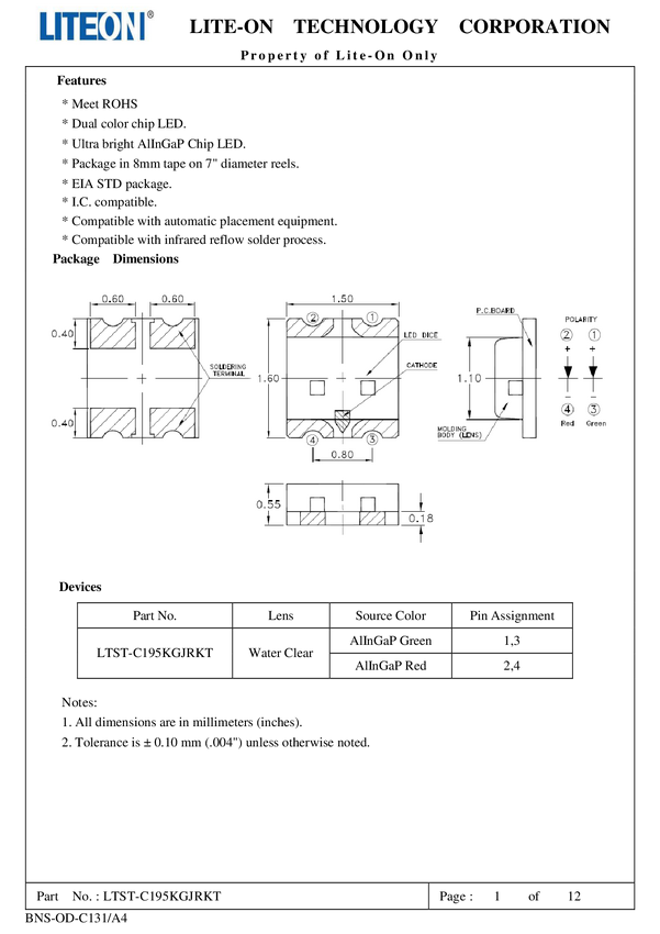 Dioda LED SMD Lite-On LTST-C195KGJRKT 35 mcd, 45 mcd 130 ° 20 mA 2 V 1 szt.