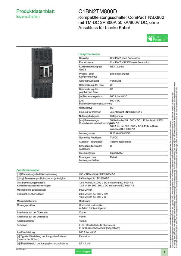 Wyłącznik zasilania Schneider Electric C1BN2TM800D 1 szt.