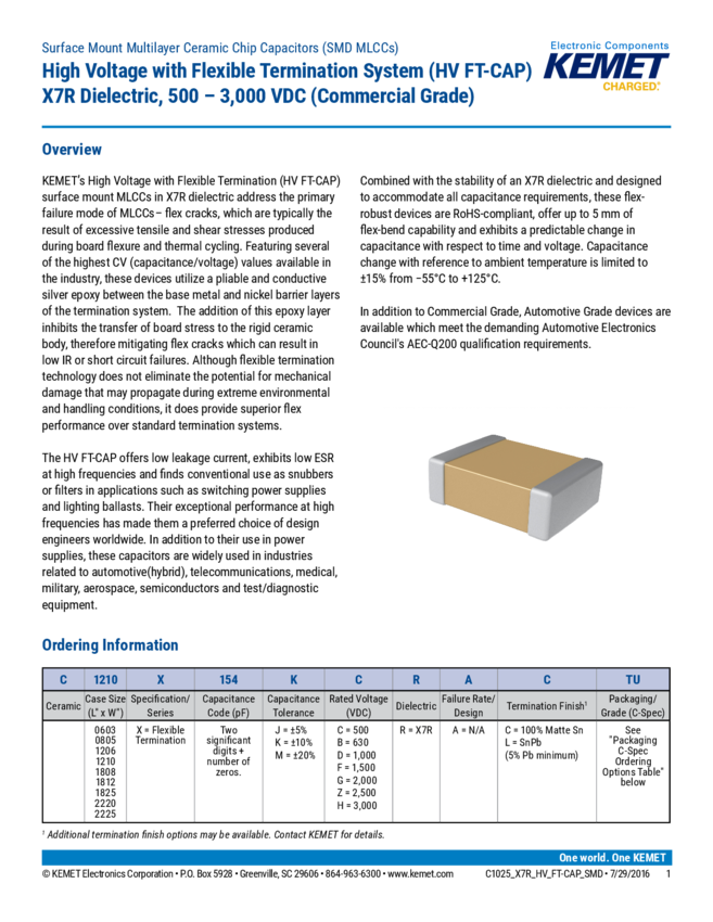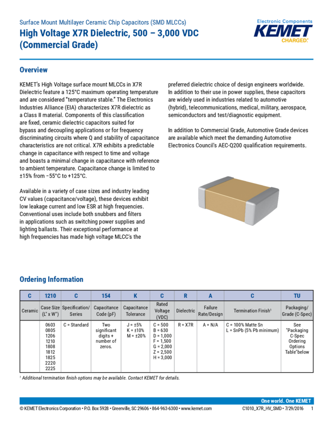 Cap Ceramic 330pF 2000V C0G 5% SMD 1210 125°C Plastic T/R