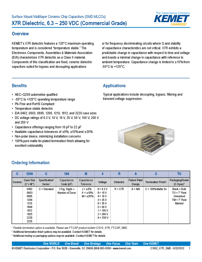 Cap Ceramic 1uF 50V X7R 10% SMD 1812 125°C Plastic T/R