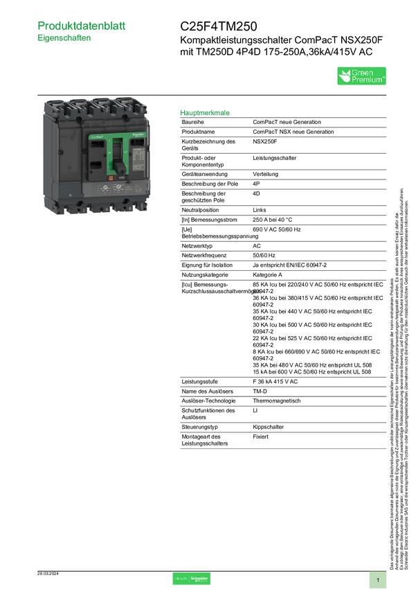 Wyłącznik zasilania Schneider Electric C25F47E250 1 szt.