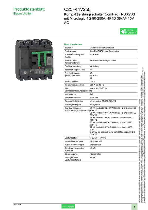 Wyłącznik zasilania Schneider Electric C25F44V250 1 szt.