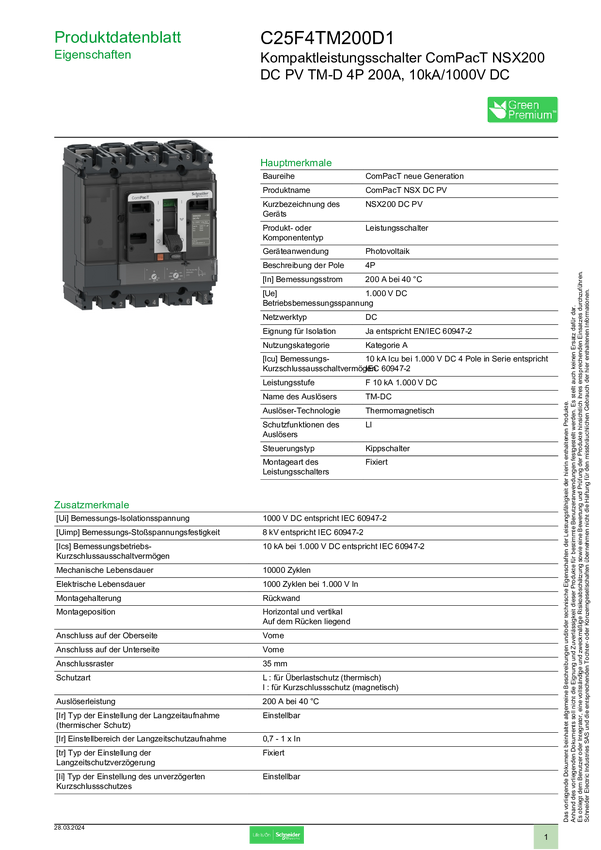 Wyłącznik zasilania Schneider Electric C25F4TM200D1 1 szt.