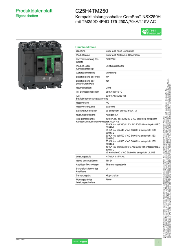 Wyłącznik zasilania Schneider Electric C25H4TM250 1 szt.
