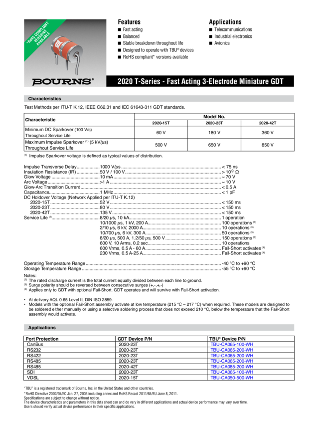 Surge Arrestor 3-Electrode 230V 20kA Thru-Hole Tray