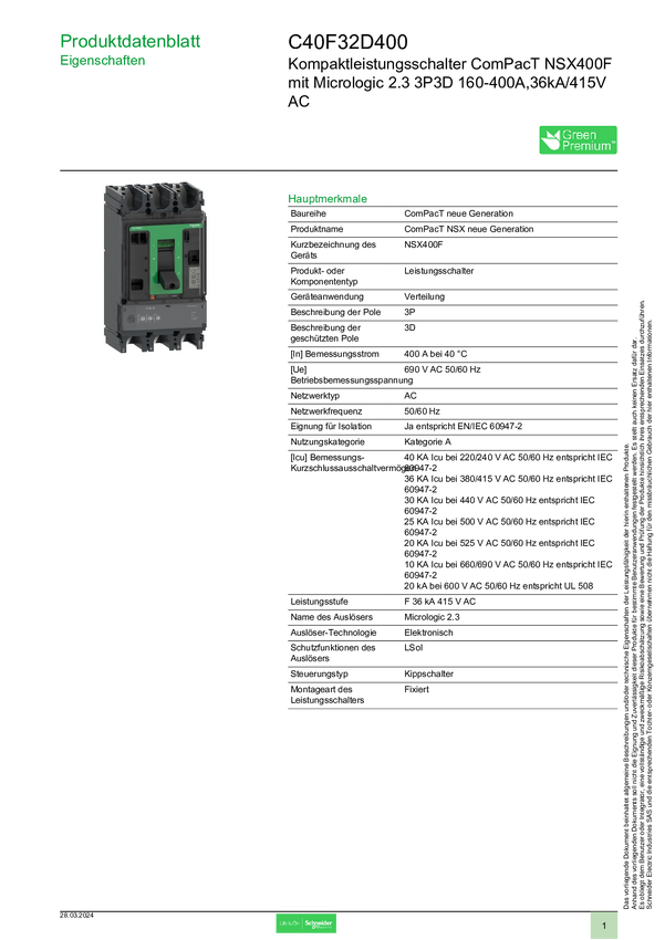 Wyłącznik zasilania Schneider Electric C40F32D400 1 szt.