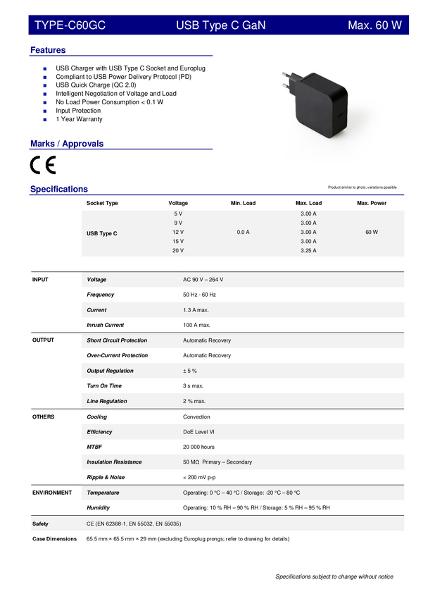Zasilacz wtyczkowy, stałonapięciowy Dehner Elektronik TYPE-C60GC 3 A 60 W