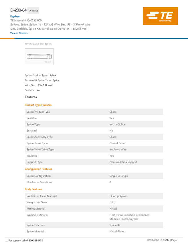 TE Connectivity TE RAY Aero/DEF Crimp C60253-000, 1 szt.