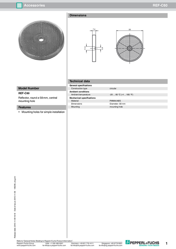 Odbłyśnik Pepperl+Fuchs REF-C60 195295 5 szt.