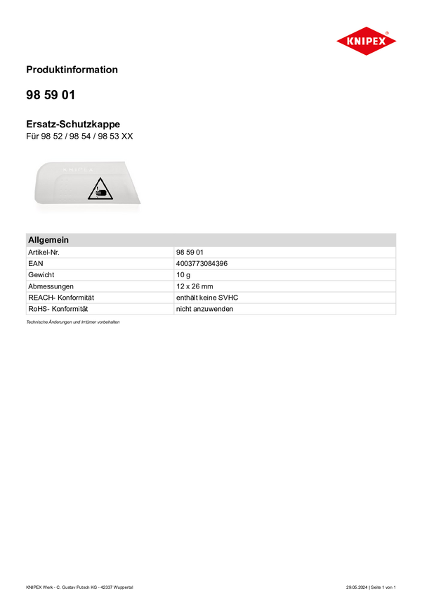 Knipex 98 59 01 Knipex-Werk Osłona zabezpieczająca Kompatybilność z markami Knipex